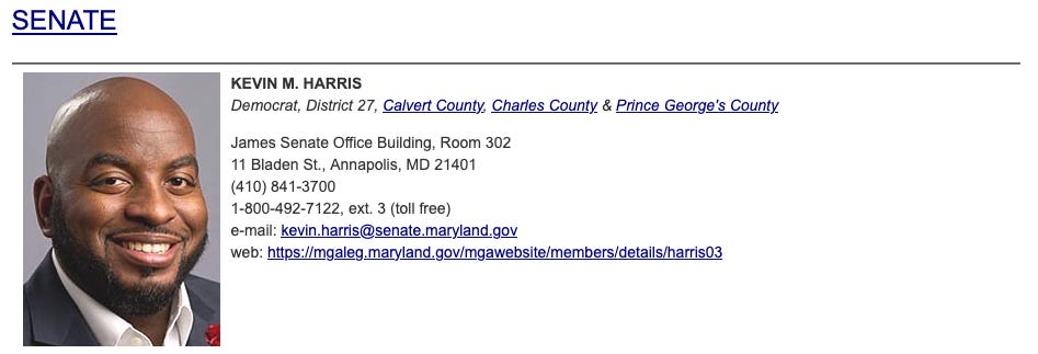 And if you live in District 27, covering parts of Calvert, Charles, and Prince George’s counties, you should be asking Kevin Harris one simple question: Who sent you?